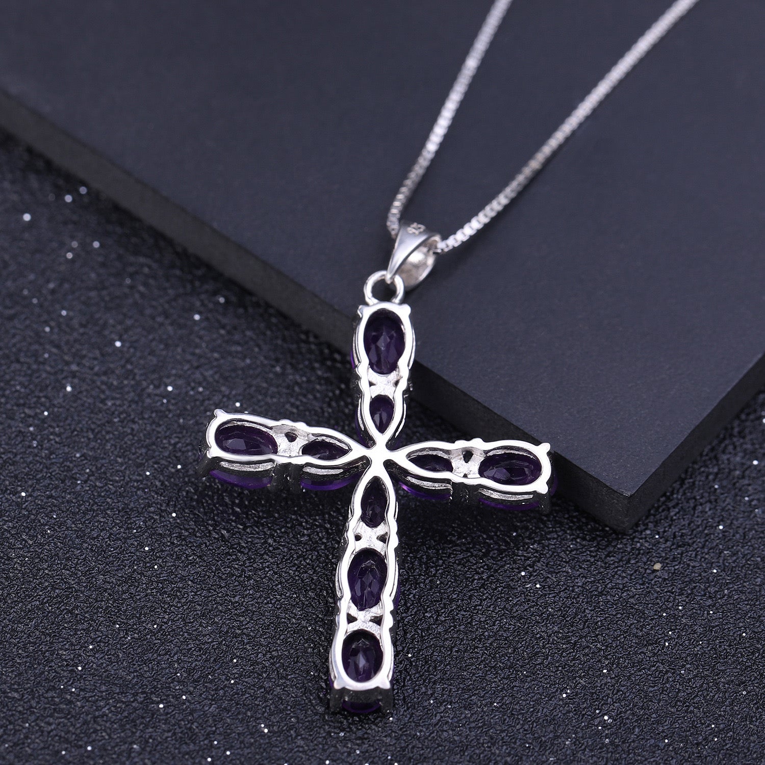 This elegant cross pendant is crafted from high-quality silver and set with eight sparkling amethyst gemstones. Perfect for both everyday wear and special occasions, it adds a touch of luxury to any outfit.